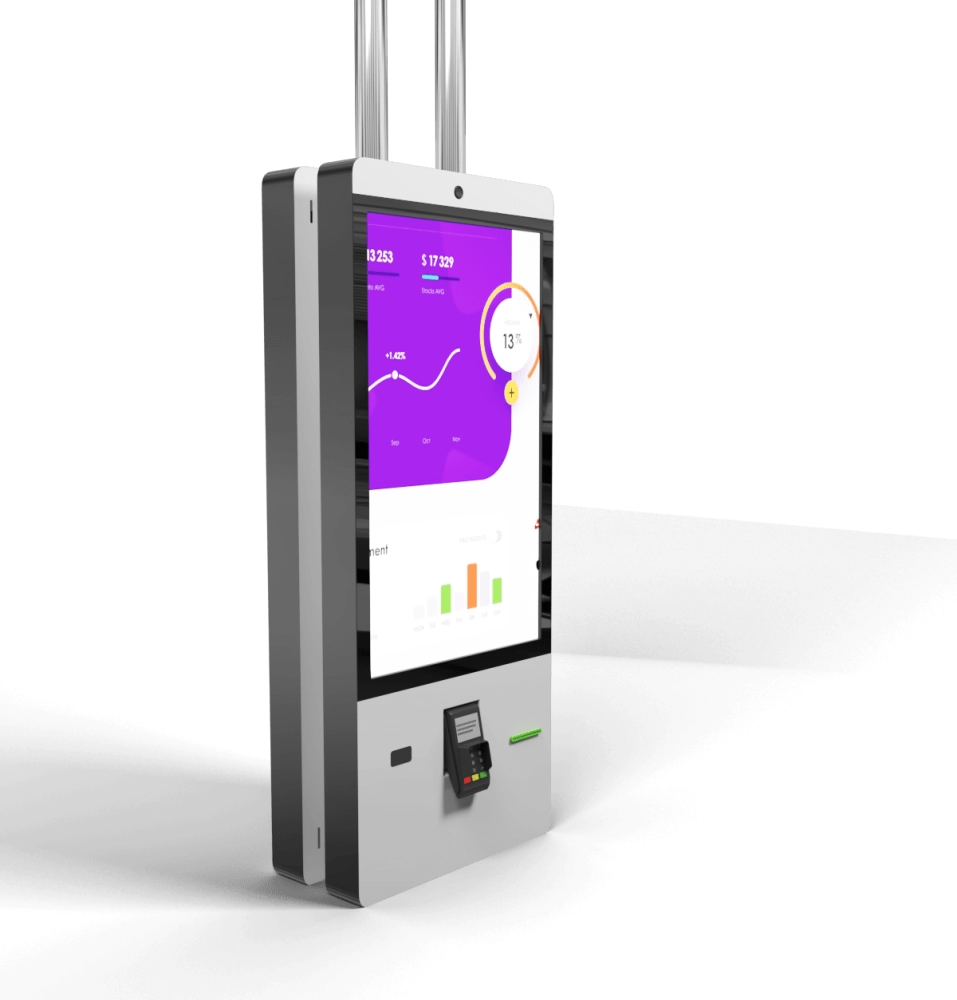 С двусторонним терминалом самообслуживания SKALA могут одновременно работать два человека. Это экономит пространство и время посетителей. Устройство в современном минималистичном дизайне монтируется специальными креплениями к полу и потолку, что вместе со стальным антивандальным корпусом обеспечивает длительную, надежную работу даже в помещениях с высокой проходимостью.