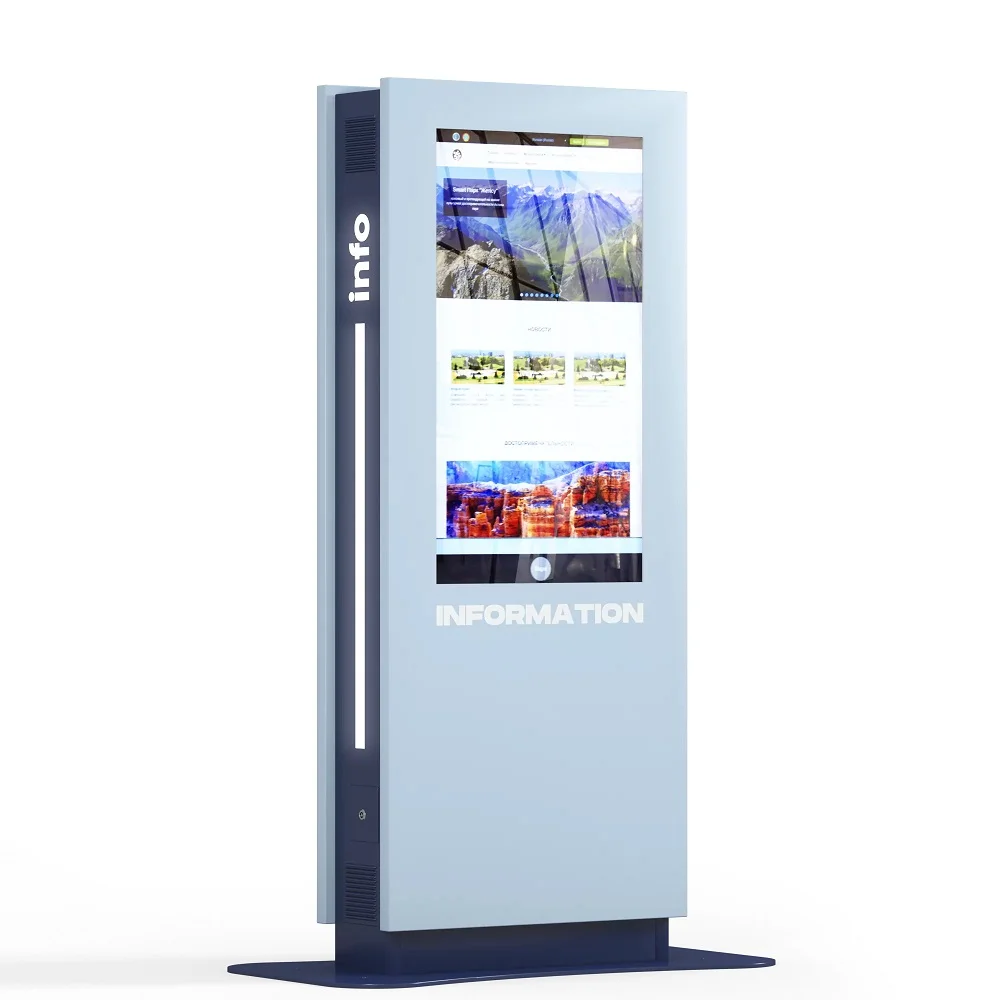 Уличный информационный сенсорный киоск с диагональю 43", разрешением 4k UltraHD 3840х2160, поддержкой 10 касаний и яркостью 2500 кд/м2