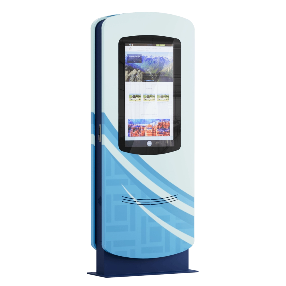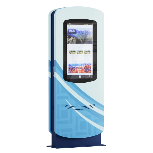 Уличный сенсорный киоск - это всепогодное интерактивное оборудование, способное работать при температурном режиме от -40 до +70°C. Оснащен ярким сенсорным экраном 2500 кд/м2. Имеет антивандальный корпус с высокой степенью защиты IP65.