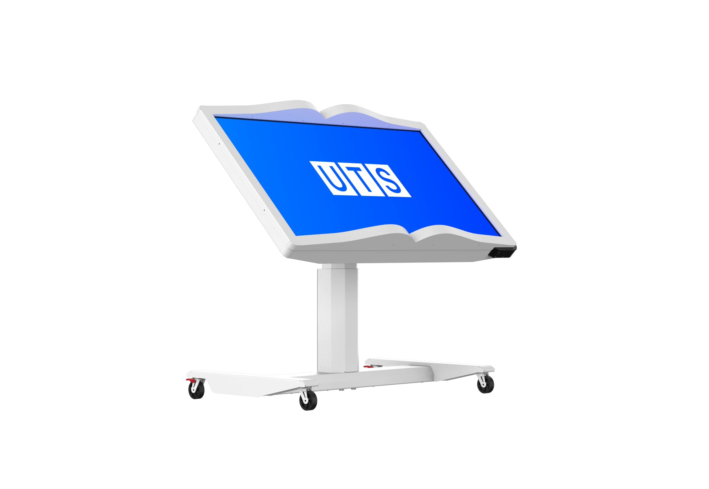 Мобильная интерактивная панель UTS Книга 55 — это многофункциональное решение, которое превращает информационную панель в интерактивный стол, идеально подходящий для использования в библиотеках, музеях и домах культуры. Панель предназначена для информирования посетителей, проведения презентаций и мастер-классов. Также она может быть использована для создания интерактивных информационных систем в различных областях.
