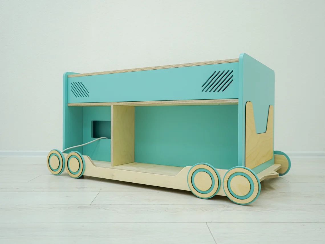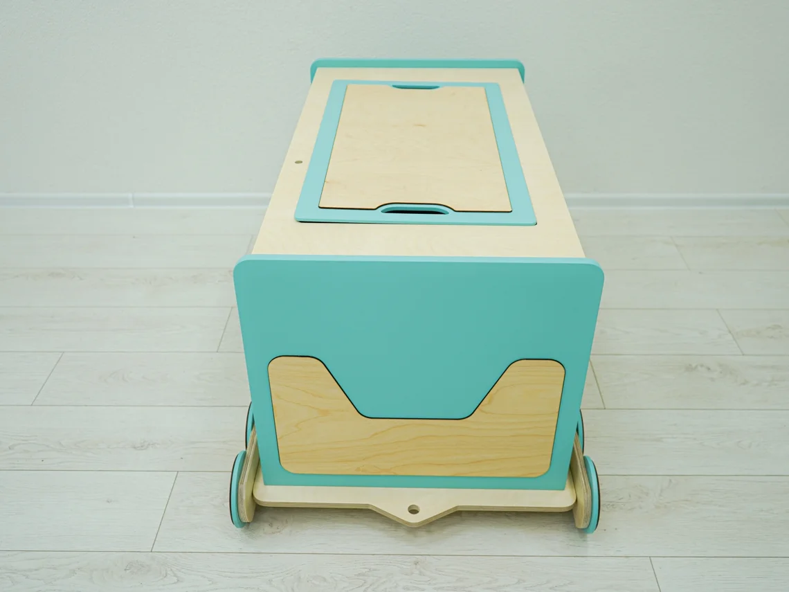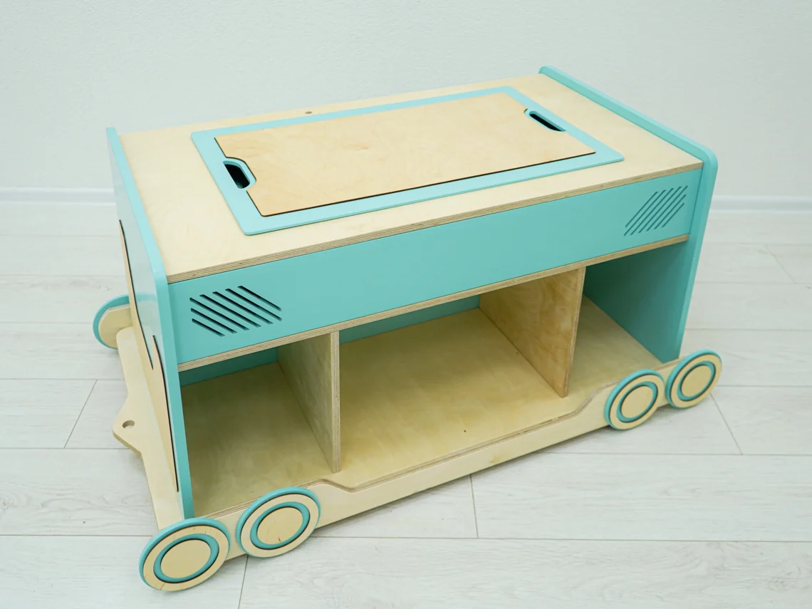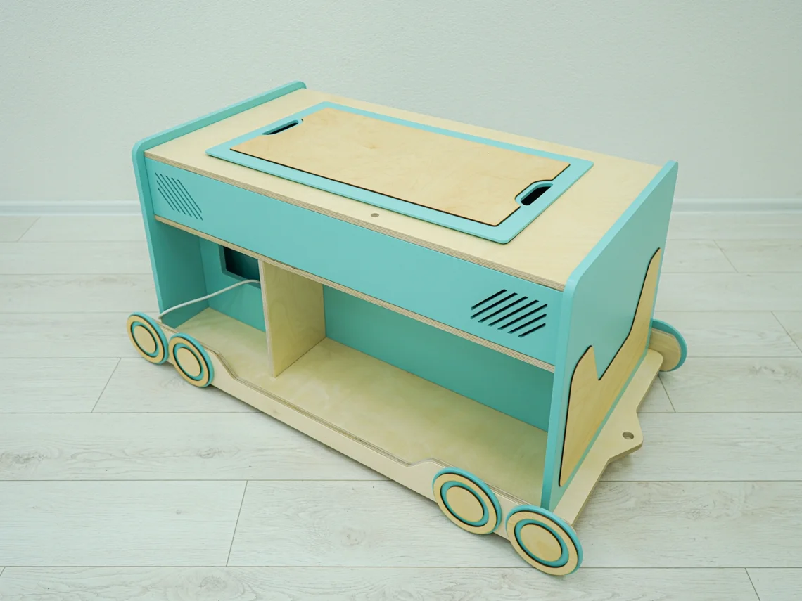 Интерактивный вагон имеет съёмную крышку. Когда крышка закрыта, поверхность стола может использоваться для рисования и создания поделок. В открытом состоянии стол превращается в увлекательную интерактивную панель, которая непременно захватит внимание дошкольников.