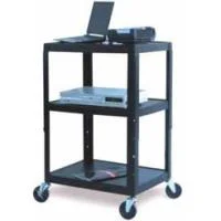 Презентационный стол для проектора. Прочный и надежный стол для проектора с одной столешницей (мобильный) и двумя полками. Конструкция из стали для большей прочности и грузоподъемности. Полки регулируемые по высоте, см: 61, 76, 86, 96, 106. Столик передвигается на прорезиненных колесах.