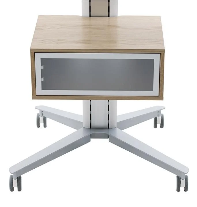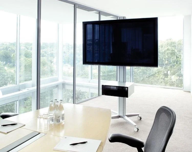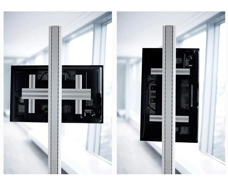 SMS Flatscreen X FH M1455 WSМобильная напольная стойка для плоскопанельного телевизора весом до 50 кг. Стойку можно дополнить полками и небольшим шкафом. На обратной стороне штанги есть устройство для электрической розетки (заказывается дополнительно). Кабели убираются в специальный желоб в штанге.