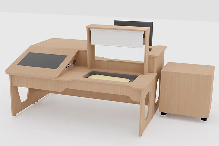 Профессиональный интерактивный логопедический стол «AVKompleks Logo 28 Pro Max» помогает комфортно проводить развивающие и коррекционные занятия с детьми. Отличие данного стола от остальных заключается в большой площади рабочего места. Наличие тумбы на колесиках помогает перемещать ее в любое удобное место.