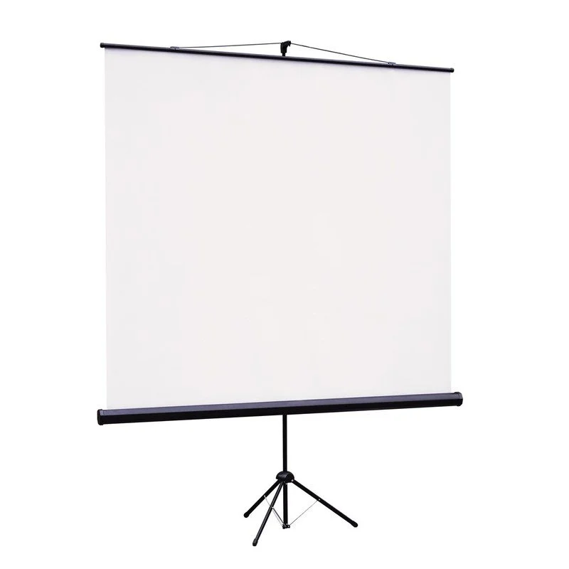 Экран можно регулировать по высоте благодаря телескопической штанге. Также встроенная функция коррекции трапеции позволяет улучшить качество изображения.