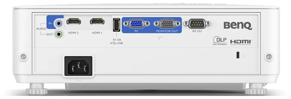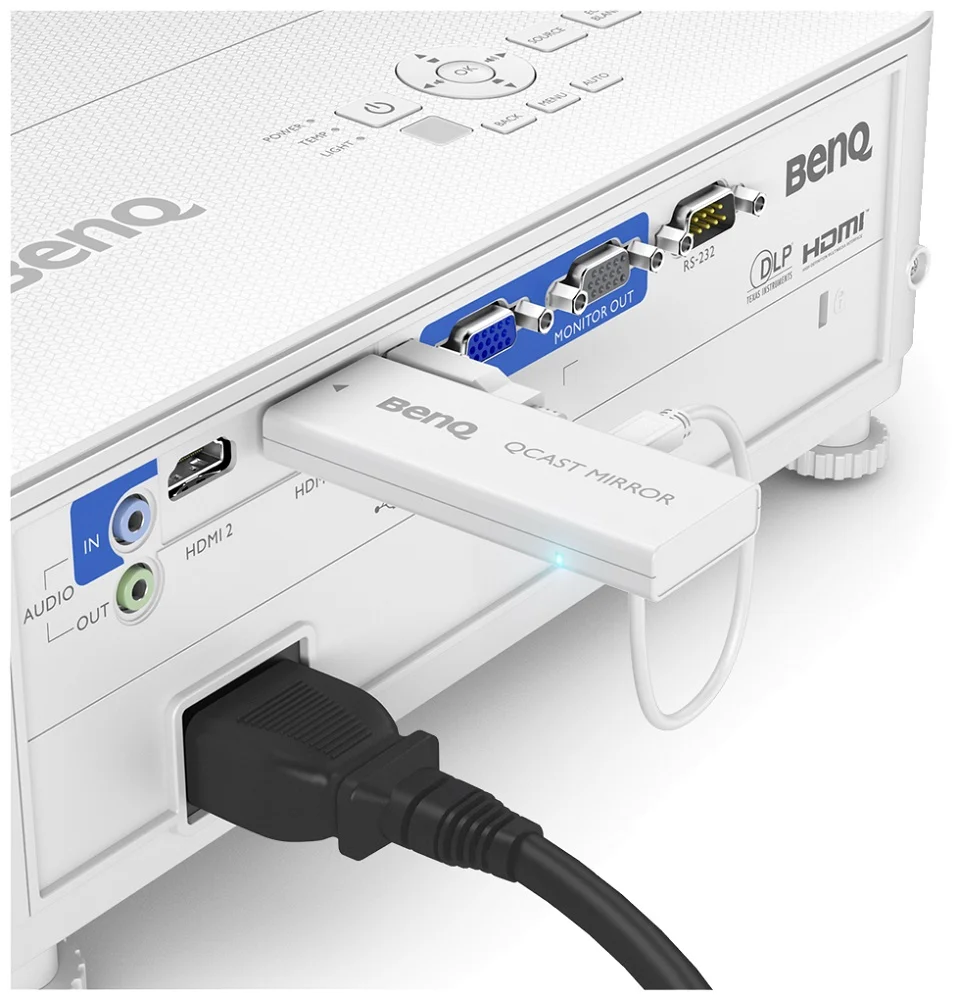 Проектор поддерживает мультиформатное подключение благодаря двум HDMI-портам, позволяя работать с несколькими устройствами одновременно. Также он совместим с беспроводными HDMI-адаптерами. Встроенный USB-разъем с питанием 5 В/1,5 А обеспечивает бесперебойное подключение и проводит полностью беспроводные презентации.
