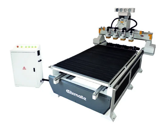 Фрезерный станок Elixmate 1325 MX оснащен 4 (четырьмя) шпинделями и 4 (четырьмя) поворотными устройствами, его основная задача, это фрезеровка цилиндрических деревянных заготовок (стойки, балясины, столбы, фигуры и статуэтки, ножки и т.д.). Фрезеровка происходит одновременно четырьмя шпинделями, что ускоряет и оптимизирует производственный процесс в 4 раза.