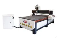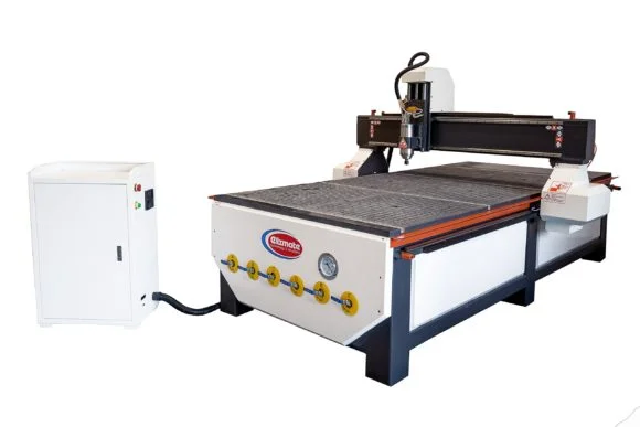 Передвижные каретки оснащены специальными закрытыми отверстиями для периодической смазки шариков внутри каретки. Высота портала 200 мм (опционно 300 мм). Мощность шпинделя 3 кВт (опционно до 6 кВт). Механическая часть состоит из 87-х шаговых двигателей. По оси «Z» установлена ШВП (D=25 мм), шлифованная ШВП исключает люфты и неточности при работе станка. Вакуумный насос 5.5 кВт, вакуумный стол разделен на 6 зон, при желании неиспользуемые зоны можно отключать из работы, для этого в передней части станка есть задвижки.